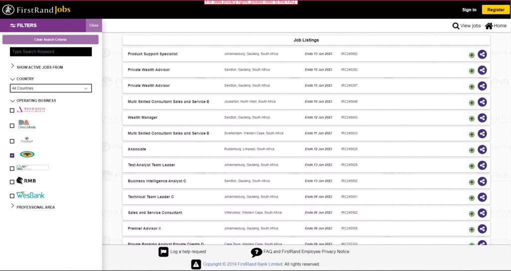 Once you’ve logged in, it’s time to search for your desired job. The FNB Career Site offers convenient search filters, allowing you to browse jobs by country, franchise, field, and more. Take your time to review the job requirements and additional information provided for each vacancy.